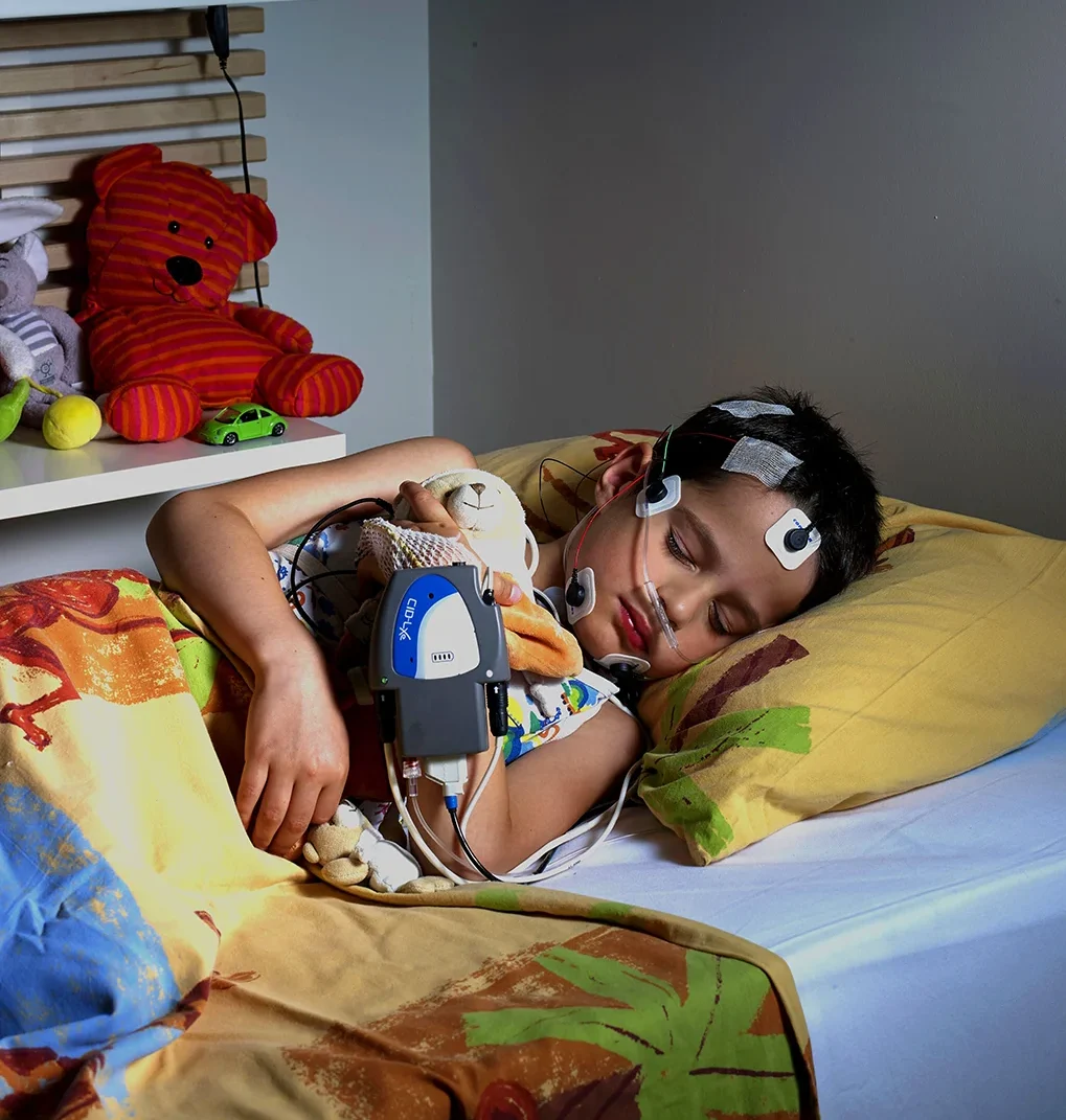 The CID-LXe can also be used for paediatric recordings. Arm-mounted polygraphs for older children, remote polygraphs for younger children, connect your paediatric-specific sensors and leads and carry out your analysis according to the specificities of this type of recording.